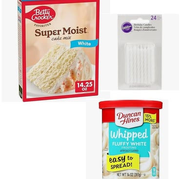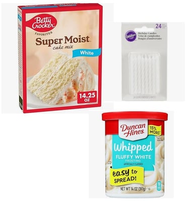 You'll Need: Water, Oil, 4 eggs, a baking pan, oven and something to spread the frosting and light the candles!